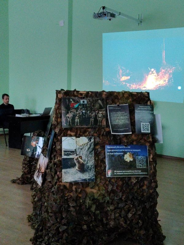 Супроводжує виставку відеозвернення військовослужбовця 26 артбригади. Підтримати проєкт та допомогти бійцям є можливість на додане посилання на QR code. Виставка діятиме до 17 грудня.