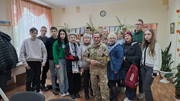 Другого жовтня, бібліотекарі університету СНАУ разом зі студентами долучились до заходу, який організували та провели колеги з бібліотеки – філії №7. Це була визначна подія – чергова зустріч із Віктором Івановичем Кузьменко, захисником України, музикантом, поетом, байкарем, спортсменом, досвідченим столяром, турботливим татом, дідусем, чоловіком.